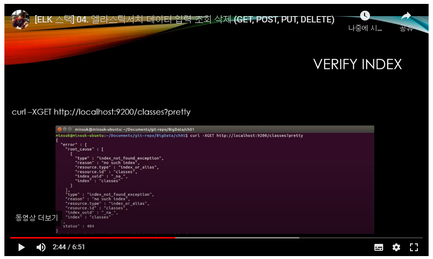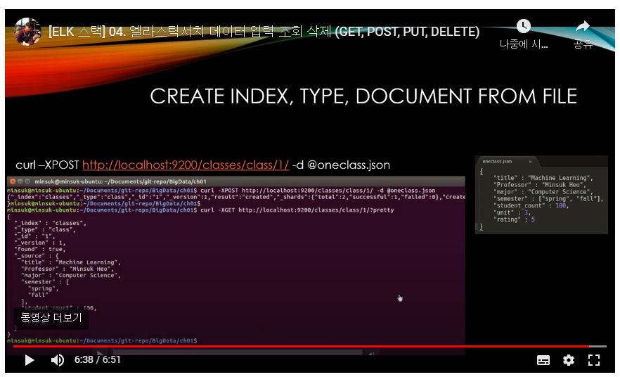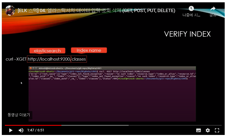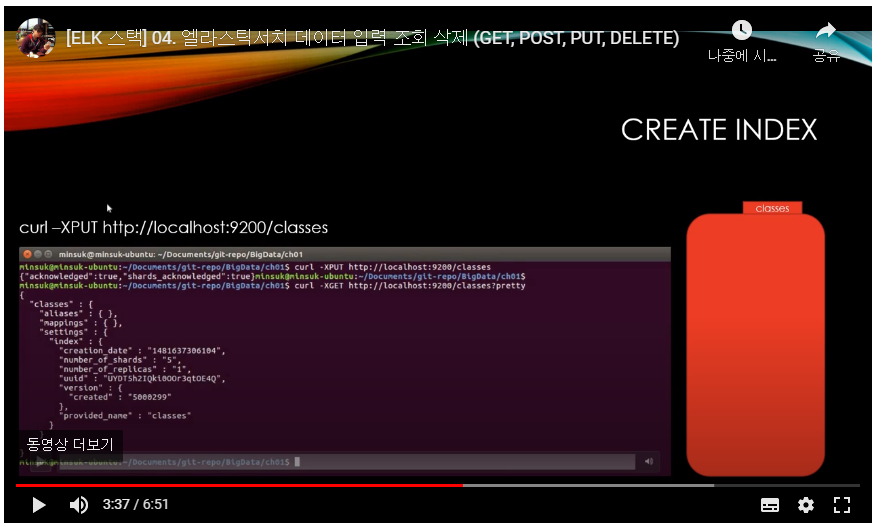 - Curl -XPUT http://localhost:9200/classes (PUT 명령어로 인덱스 생성)