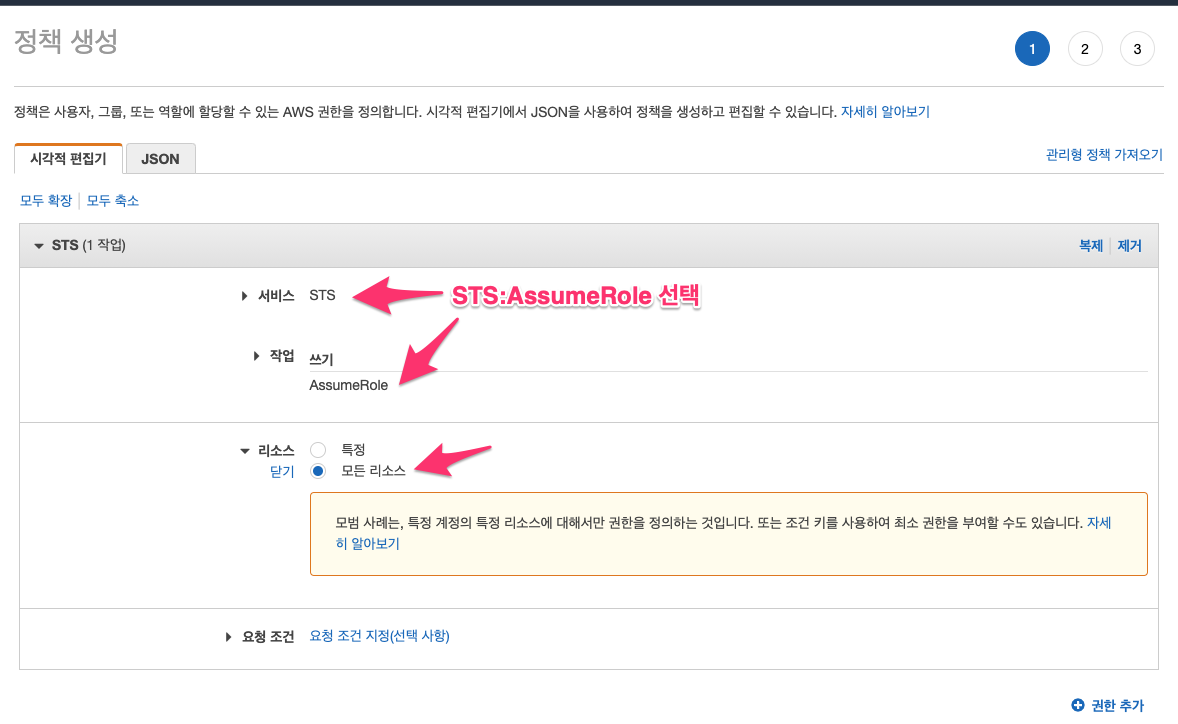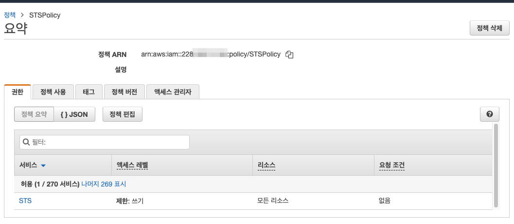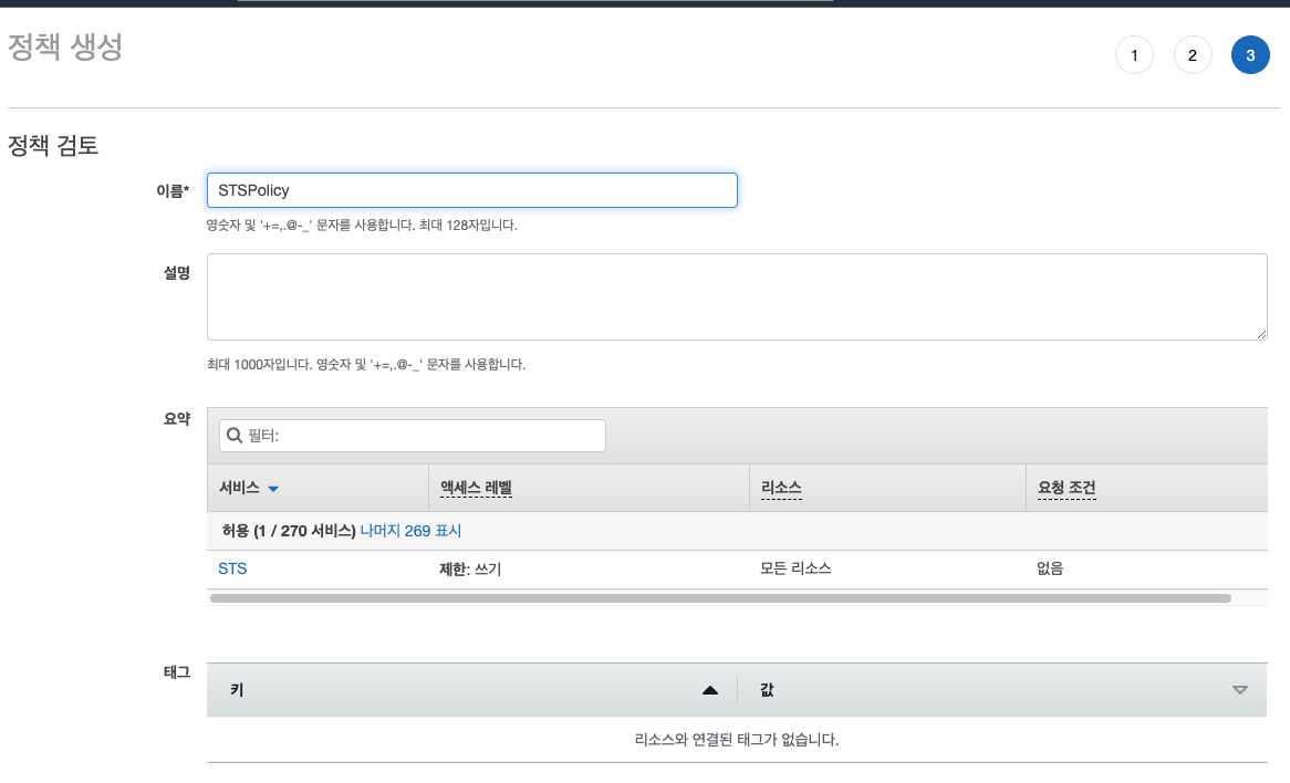 AWS 관리 콘솔 > IAM > 정책 > 정책 생성