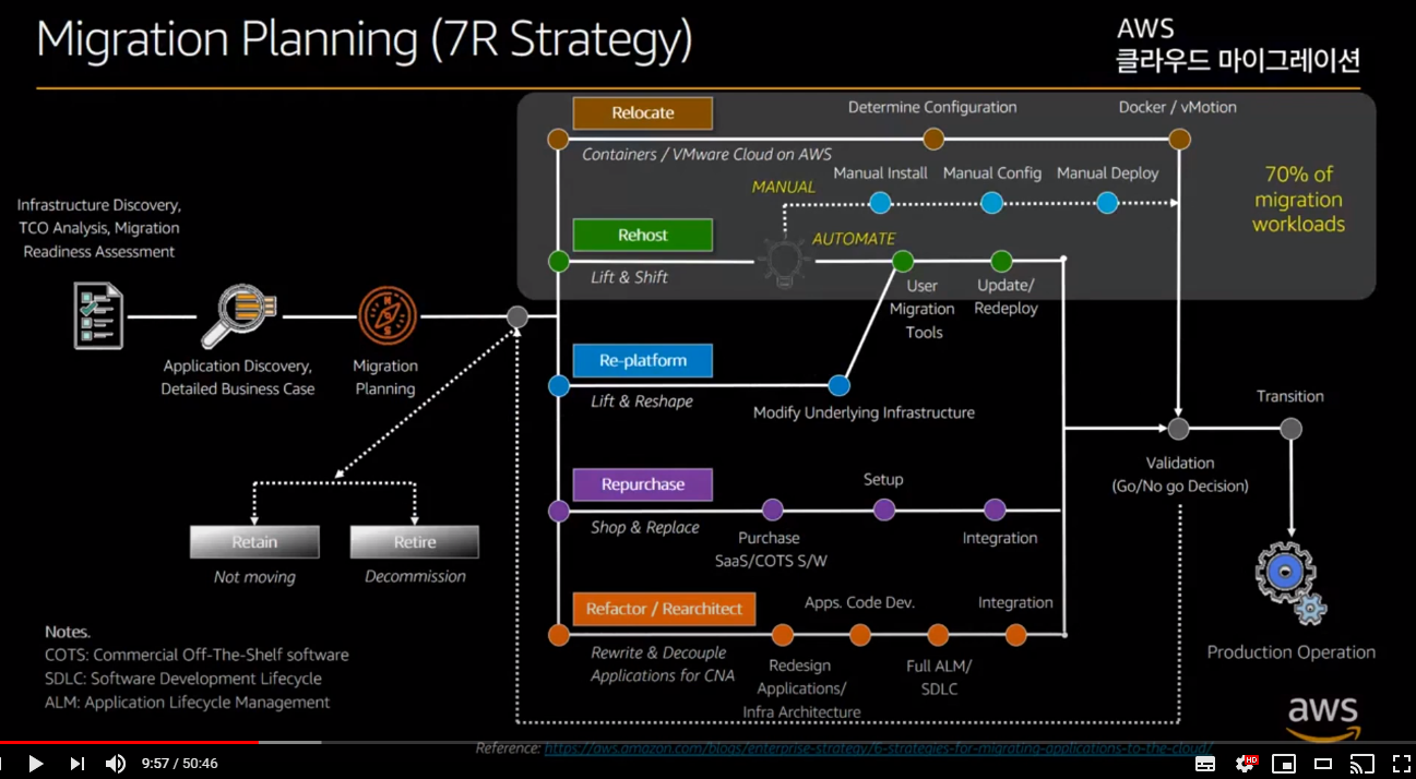 - Relocate / Rehost / Replatform / Repurchase / Refactor / Retain / Retire