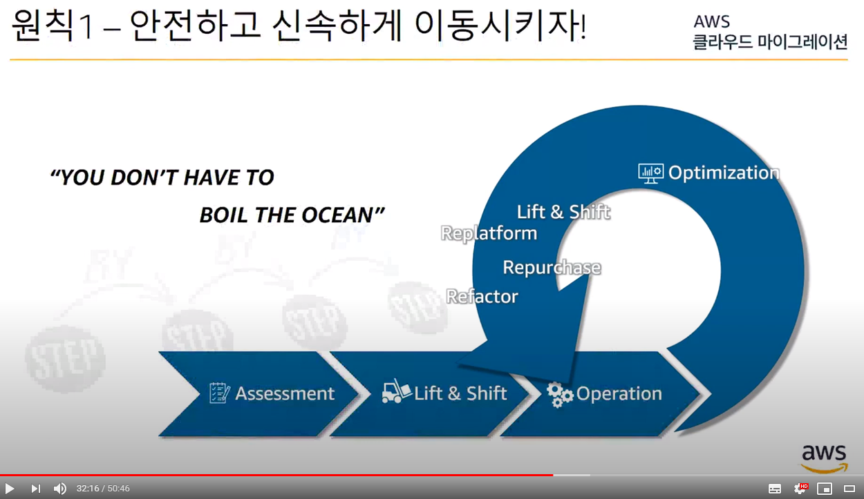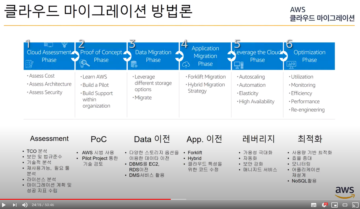 - Assessment (진단단계) -> PoC -> Data 이전 -> APP 이전 -> 레버리지 -> 최적화