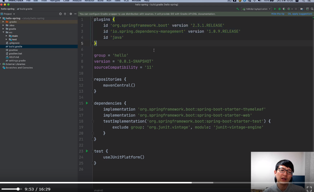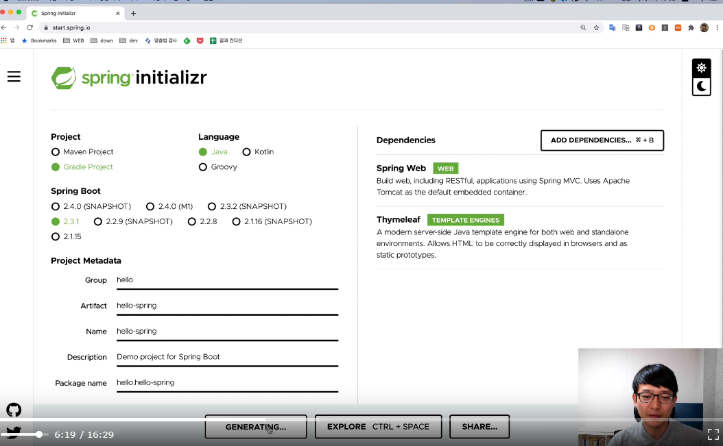 - Dependencies : spring web 선택 / thymeleaf 선택