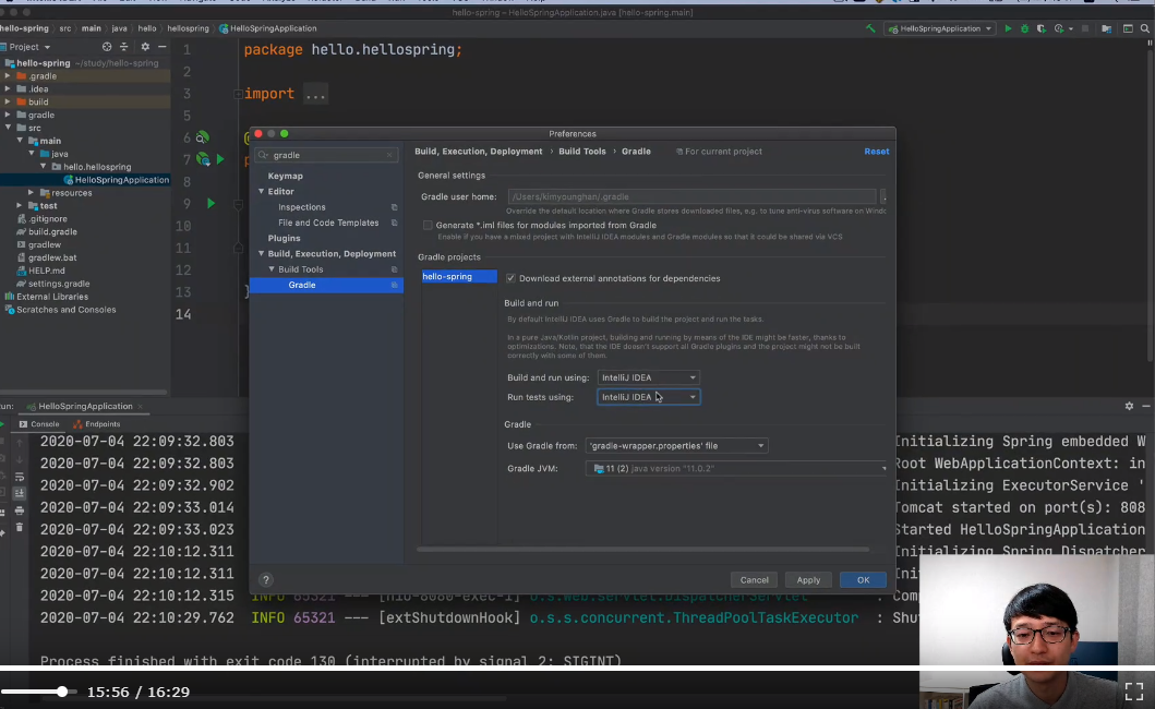(Gradle 통하지 않고, 인텔리제이로 곧바로 Run 띄워서 속도가 빠름)
