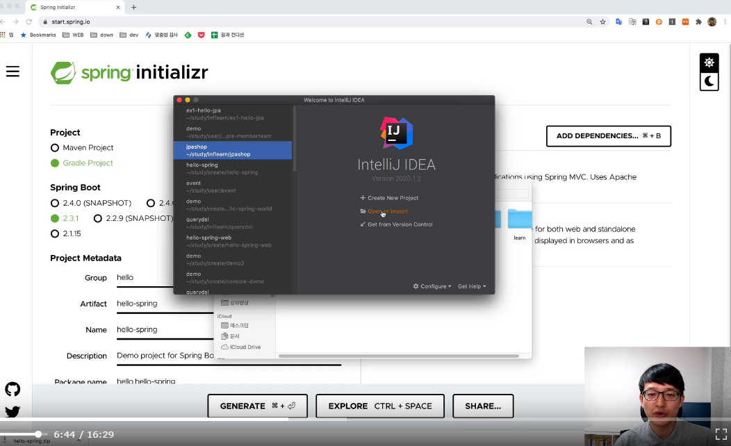 - 다운로드 받고 압축 풀고, IntelliJ 로 Open
