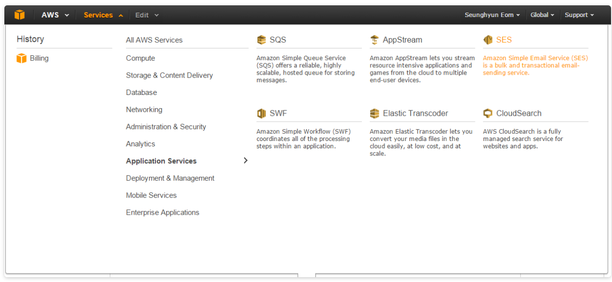 SES는 여러 이메일 전송 인터페이스를 제공하는데 SES 콘솔을 이용해서 메일을 발송할 수도 있고 SMTP 인터페이스나 SES Query API를 직접 호출할 수도 있다.
