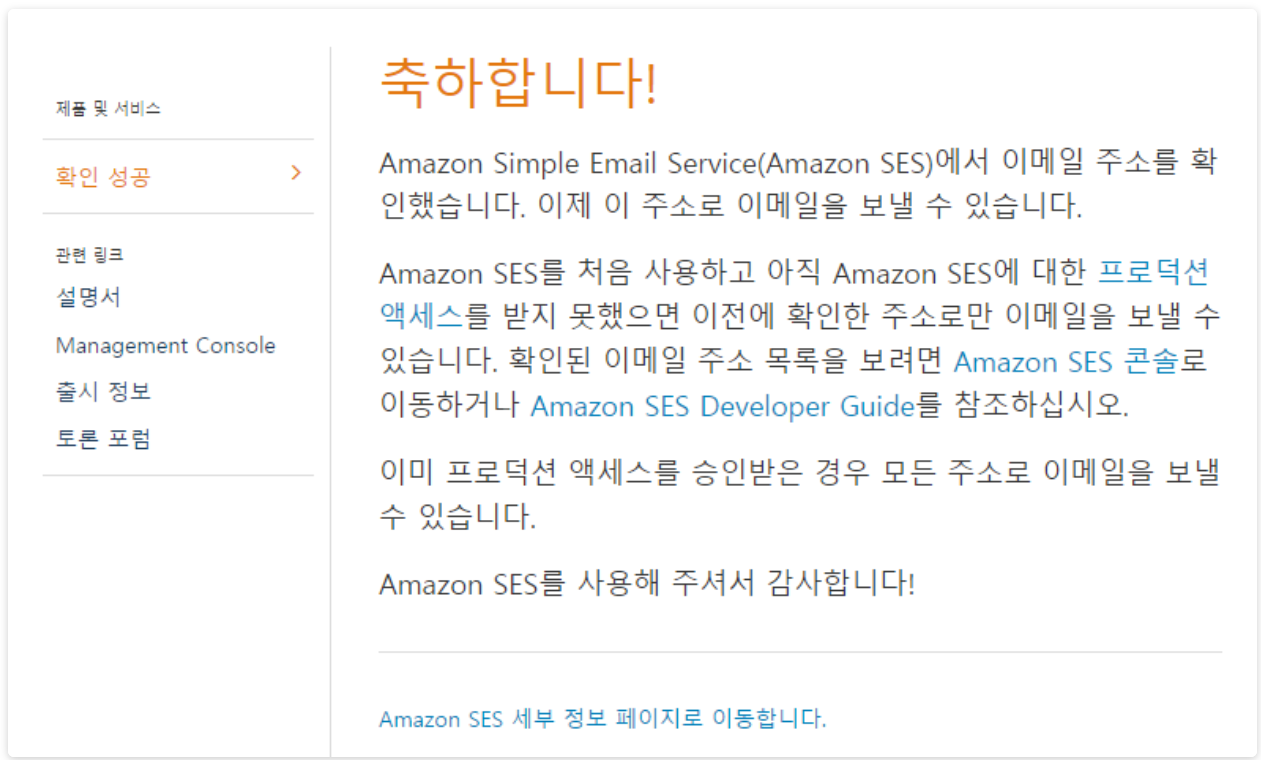 SES를 사용하는 단계로는 도메인 혹은 이메일 주소를 인증받고, 프로덕션 엑세스를 요청하며 승인을 받고 나면 이메일을 보내고 피드백을 받을 수 있다.