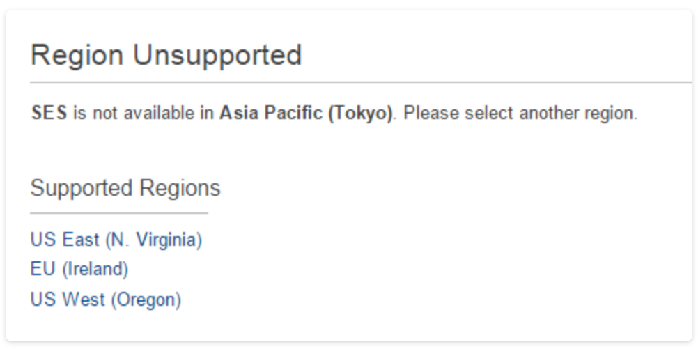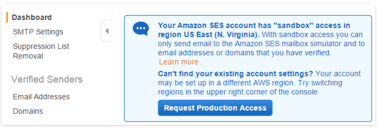 현재 SES는 전체 리전에서 사용할 수는 없고 위의 리전에서만 사용이 가능하다. 본 포스트에서는 US East (N.Virginia) 리전을 선택했다.