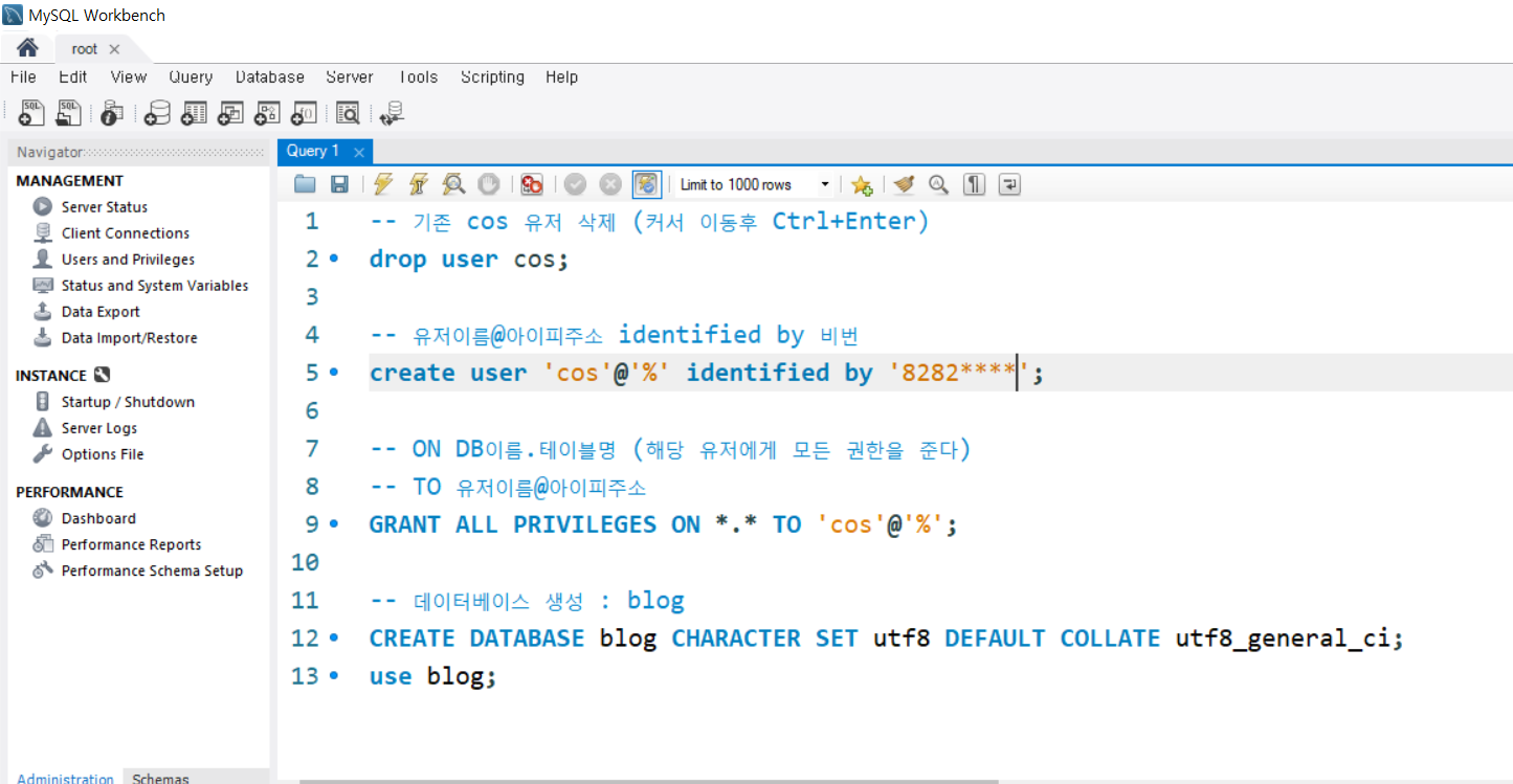create user 'cos'@'%' identified by 'cos1234';