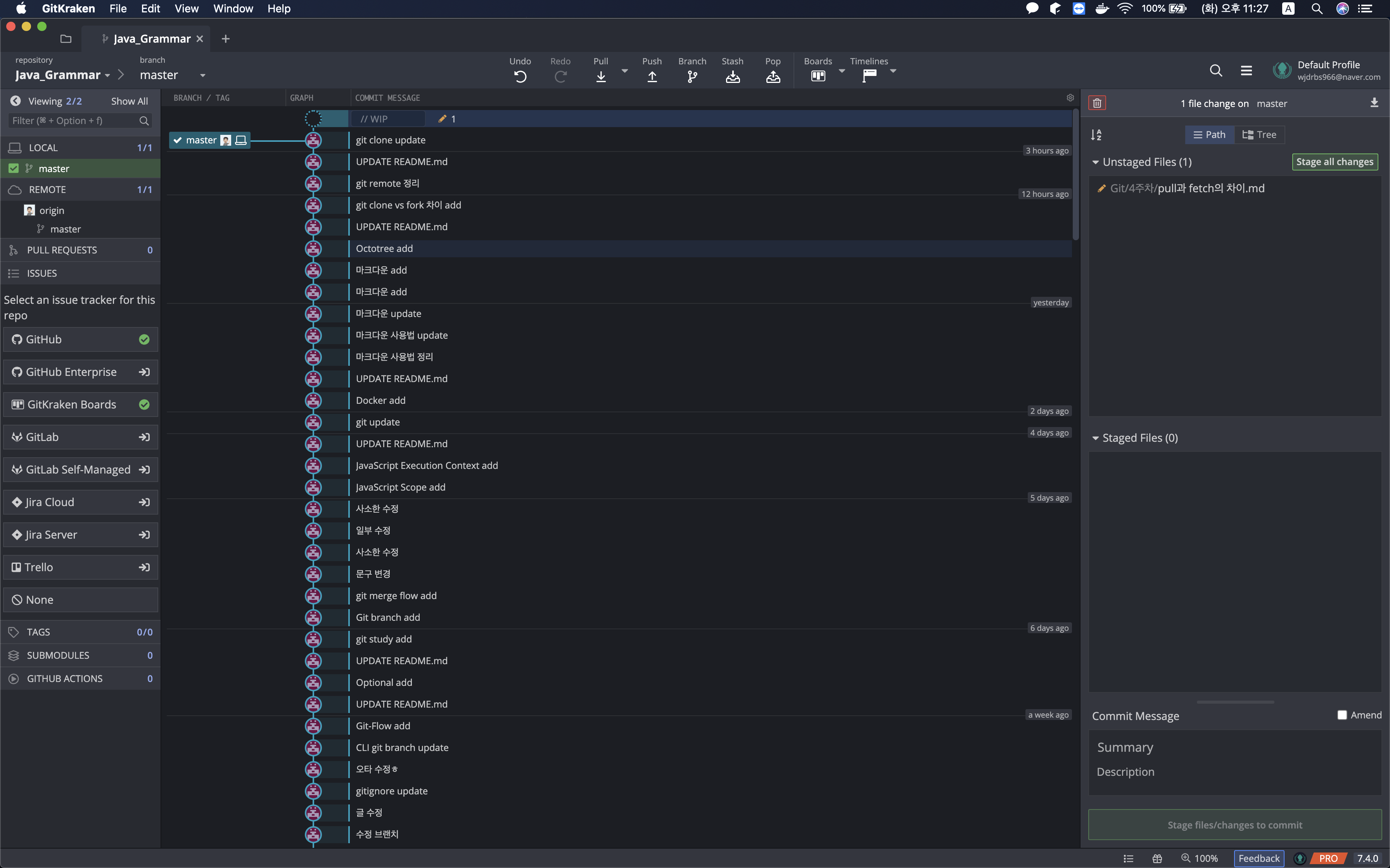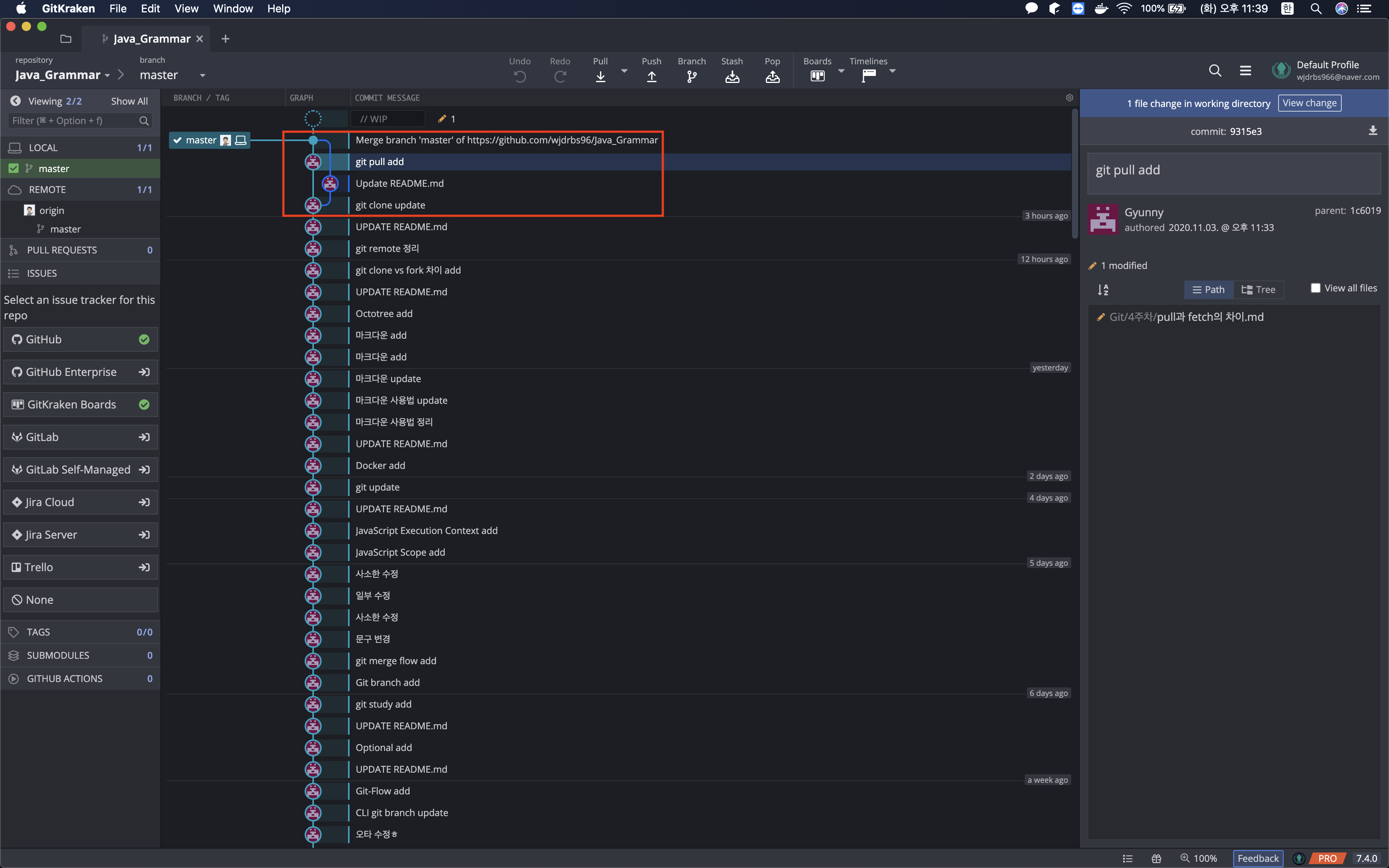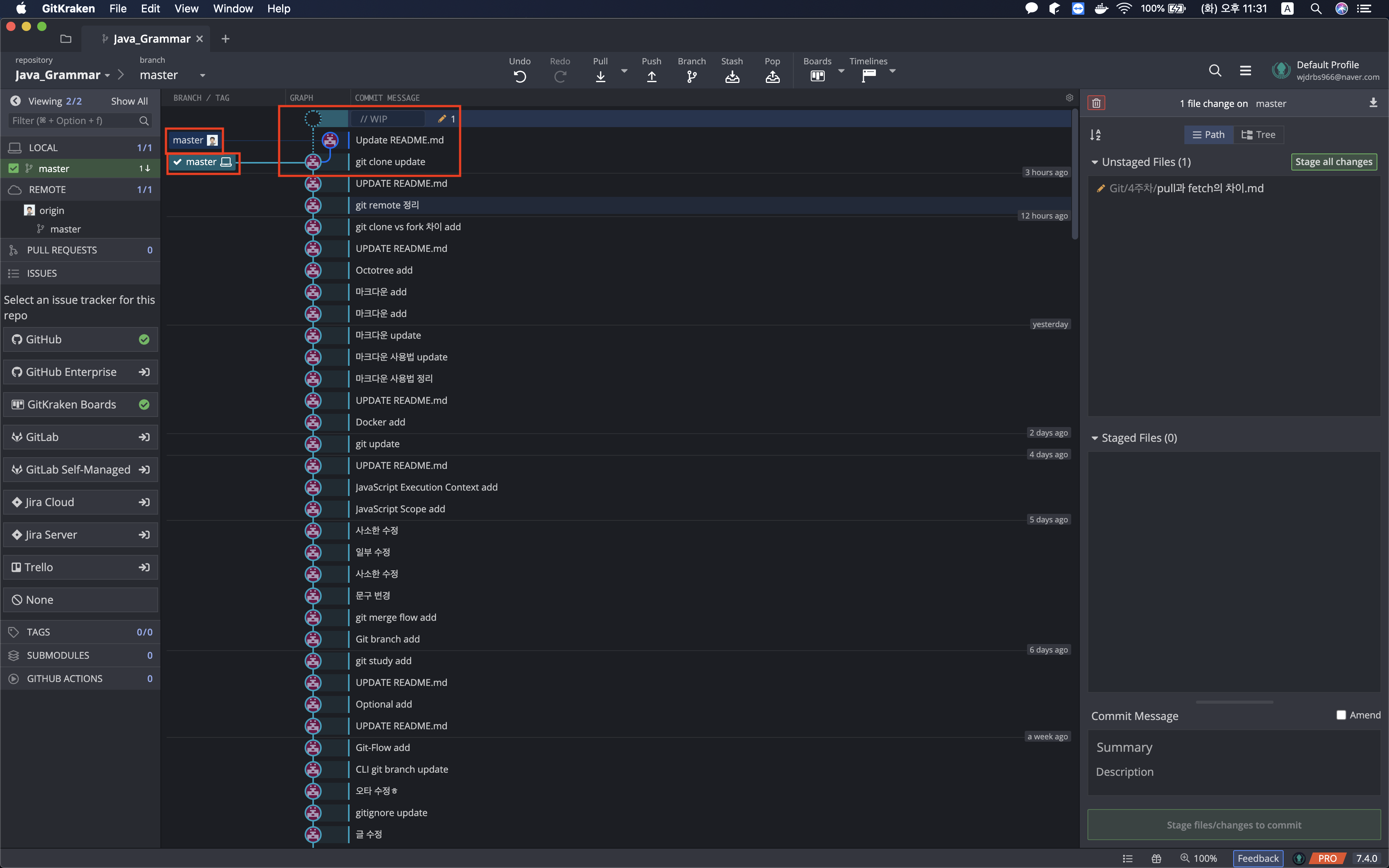 Git Kraken에서는 어떻게 보여지는지 확인해보자.