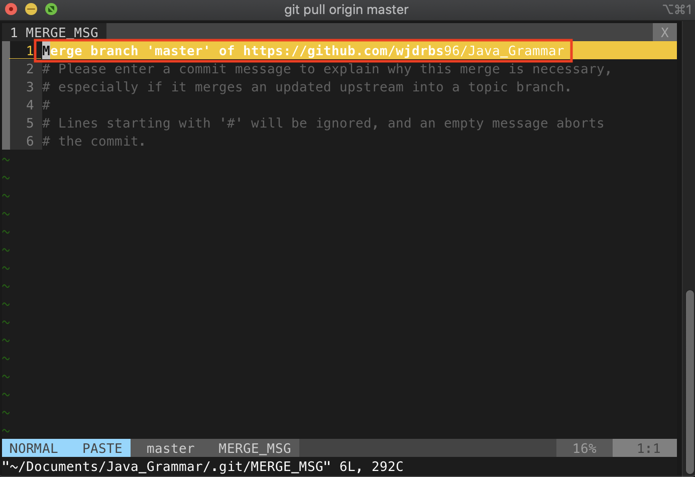 위에서 말했던 것처럼 pull을 원격 저장소의 내용을 로컬 저장소로 가져오면서 자동으로 병합(Merge)를 해주기 때문이다.