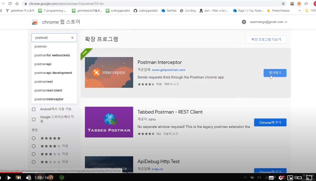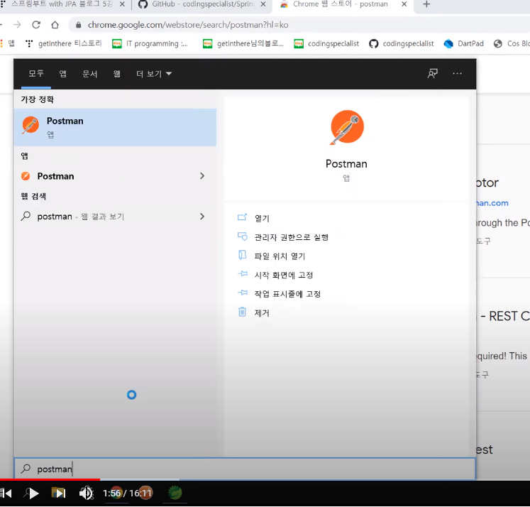 1. POSTMAN 설치 (크롬 확장프로그램 조회)