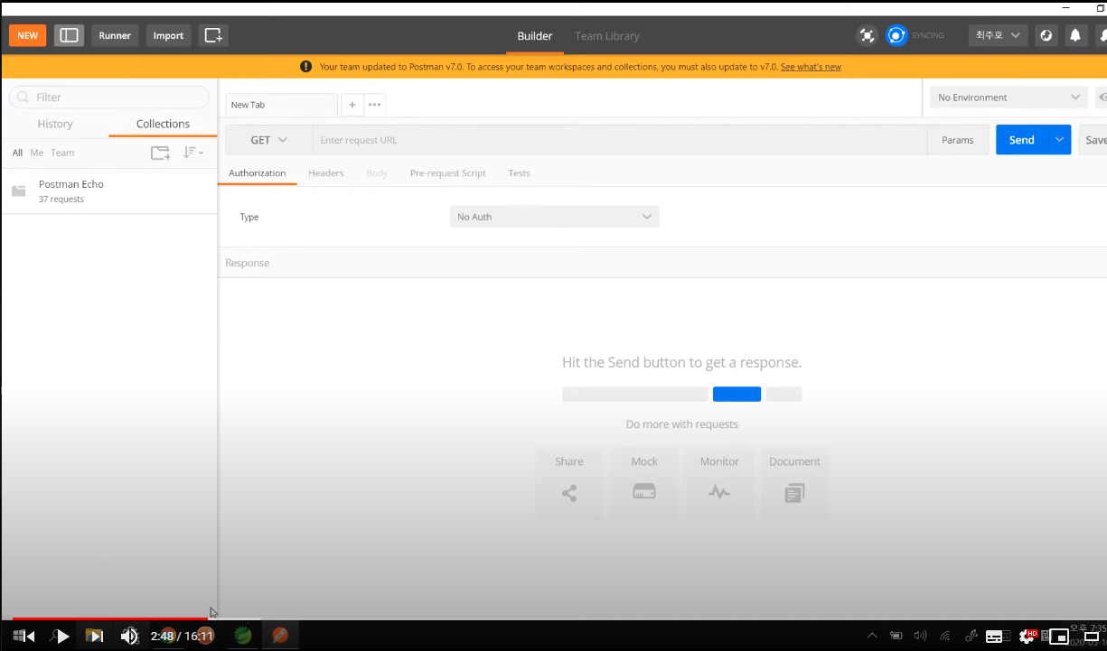 - 설치 후, 시작프로그램에서 Postman 검색 실행