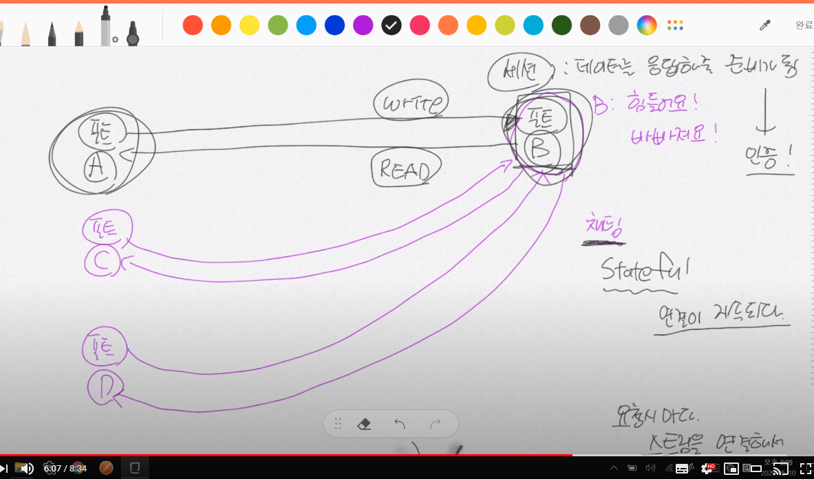 요약 : stateless방식은 한번의 요청과 응답이 이루어지면 클라이언트와 서버와의 연결선이 끊어지는 것을 말한다. 이 방식은 주로 http에 사용되는 방식이며 이는 서버의 부하를 줄여준다.