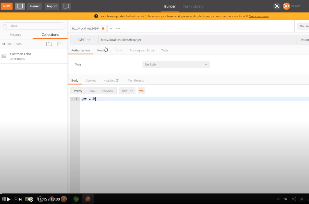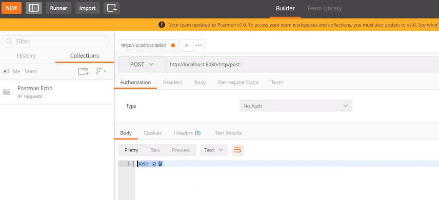 5. 웹브라우저에서는 Get 만 테스트 할수 있어, Postman 에서 동일하게 테스트