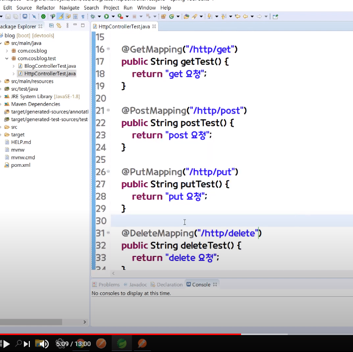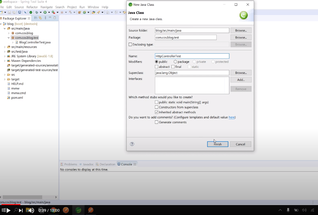 2. com.cos.blog.test 패지지 밑에 HttpControllerTest 클래스 생성