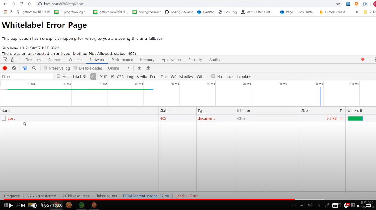 : 에러 405 실패 (허용되지 않음)
