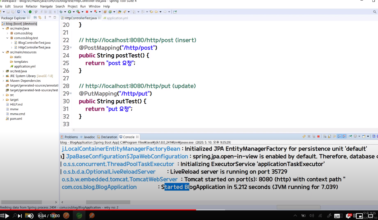 3) Put 요청 : http://localhost:8080/http/put