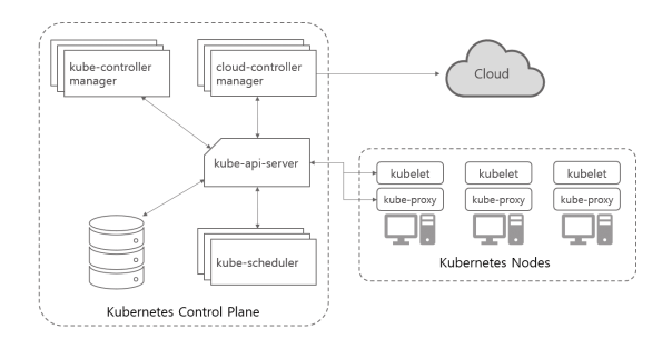 - 쿠버네티스의 영역은 크게 노드를 하나로 묶는 클러스터를 관리하는 컨트롤 플레인 영역과 흩어져 있는 각 노드를 관리하는 노드 영역으로 나눌 수 있다.