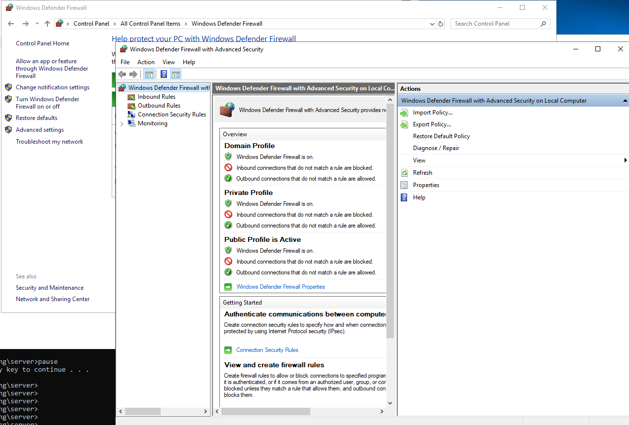 CMD 에서 Firewall --> Advanced settings 클릭