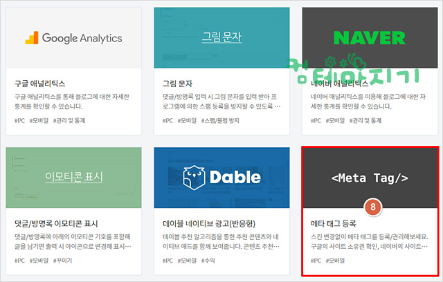 ▼ 플러그인에서 8. 메타태그를 클릭합니다.