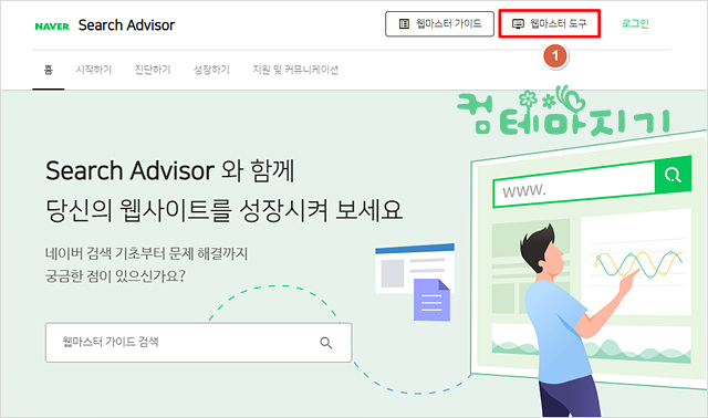 ▼ 네이버 서치어드바이저 화면에서 1. 웹마스터 도구를 클릭합니다.