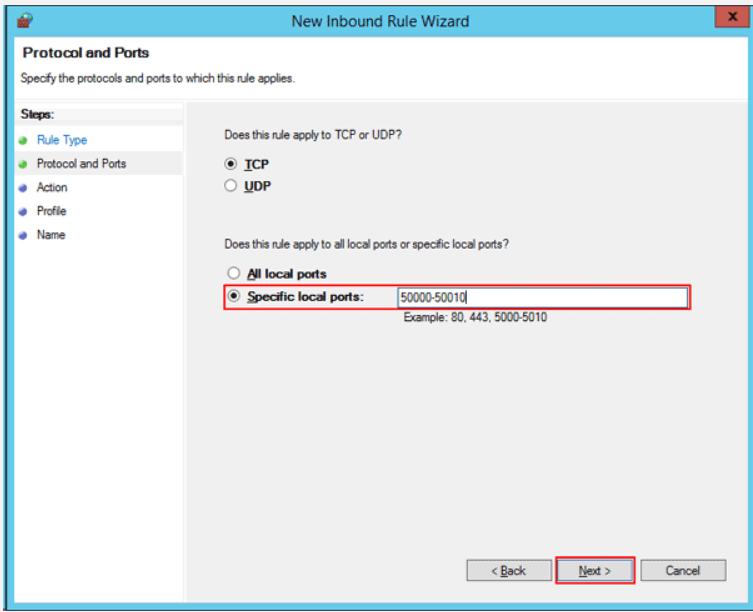 12. Add Rule 클릭후 포트 50000-500010 추가