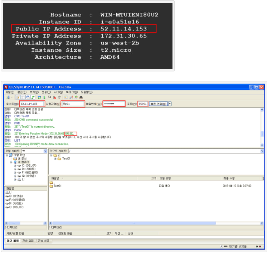 13. Filezilla 에서 Public IP Address 로 50001 로 접속
