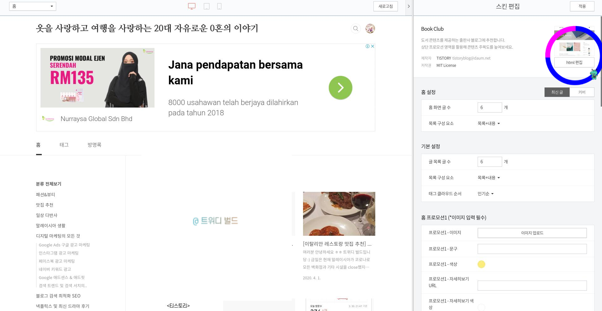6. 우측 상단 위에 보이는 HTML 편집 클릭!