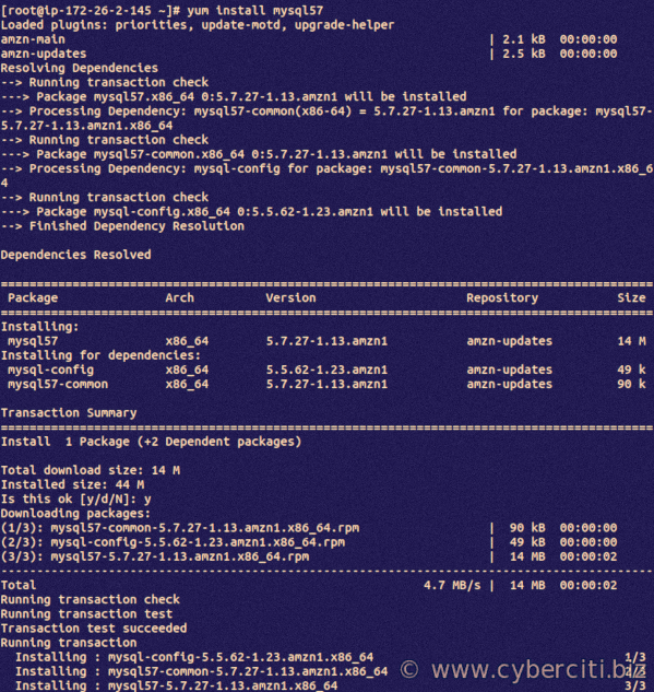 Amazon Linux AMI는 yum을 사용하여 mysql 프로그램을 설치합니다.