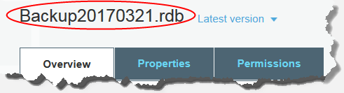 - .rdb 백업 파일 이름을 선택합니다. 선택한 파일 이름은 페이지 맨 위의 탭 위에 나타납니다.